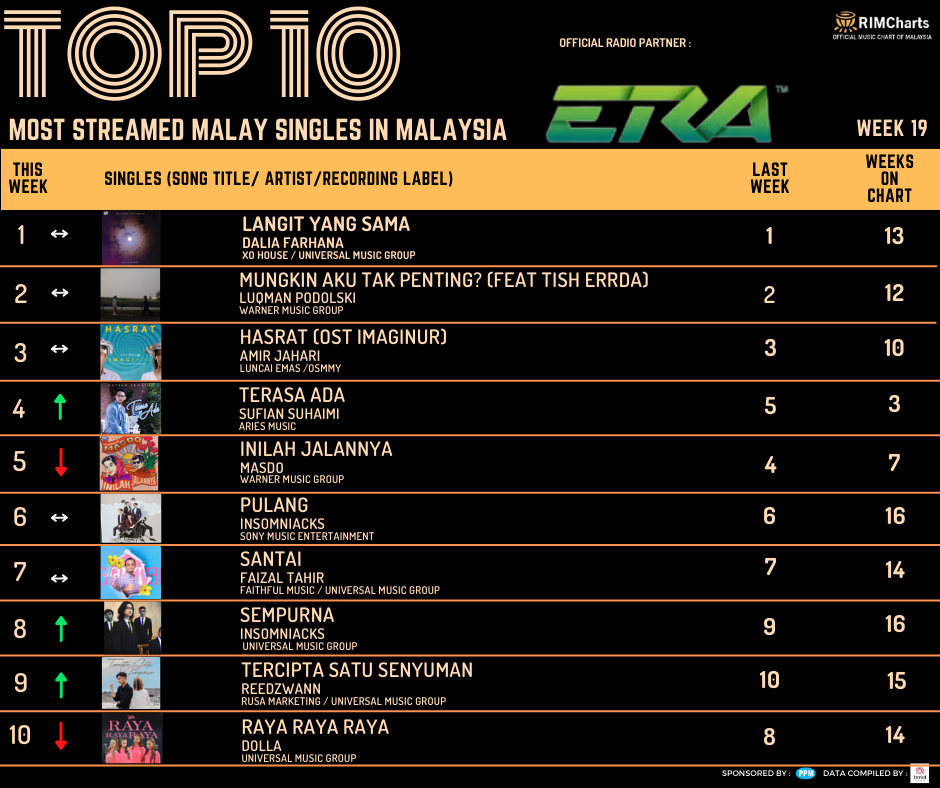 RIM Charts TOP 10 Most Streamed Domestic Singles in Malaysia-Week 19 (05/05/2023-11/05/2023)