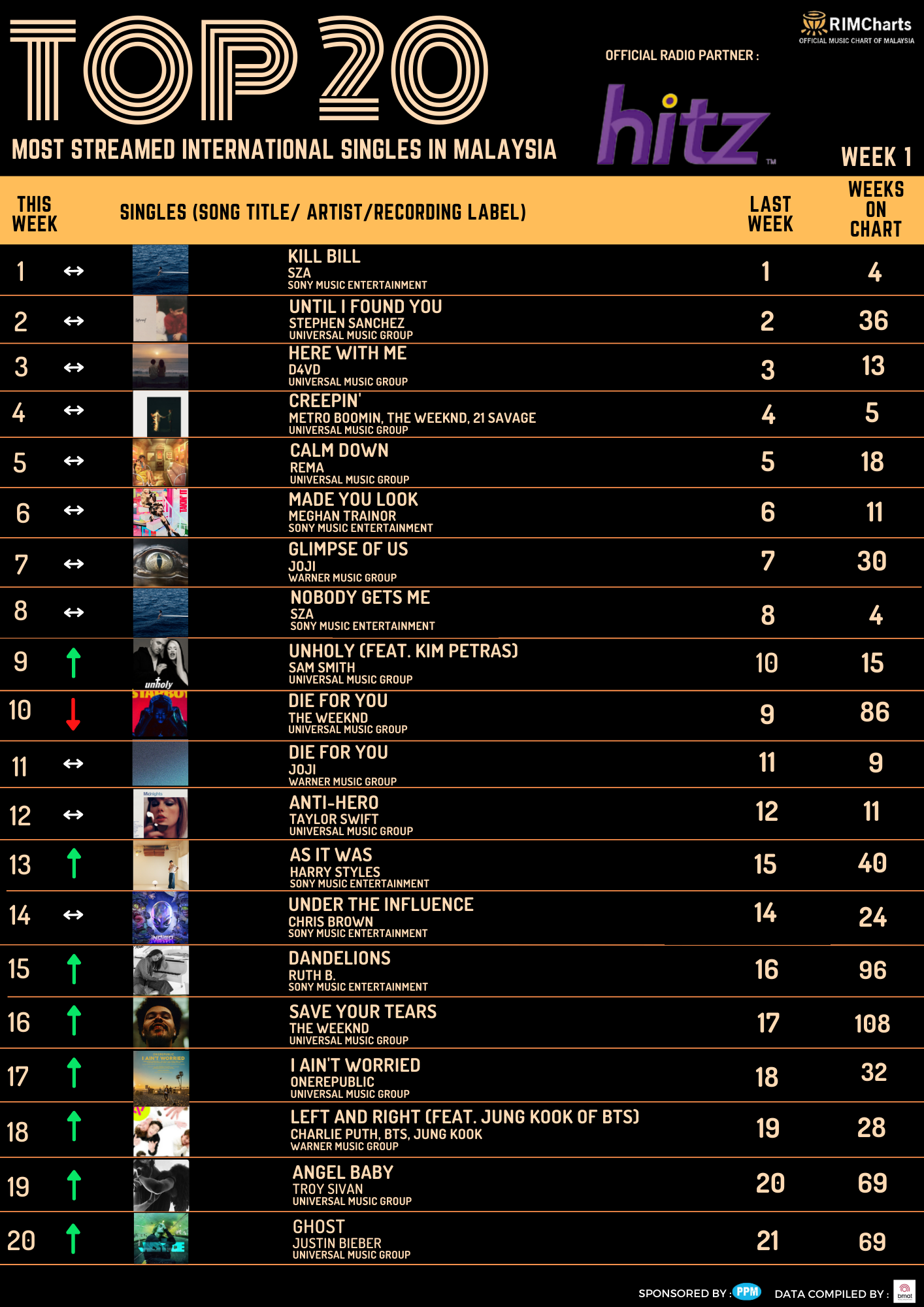 RIM Charts Top 20 Most Streamed International Singles in Malaysia – Week 2 (06/01/2023-12/01/2023)