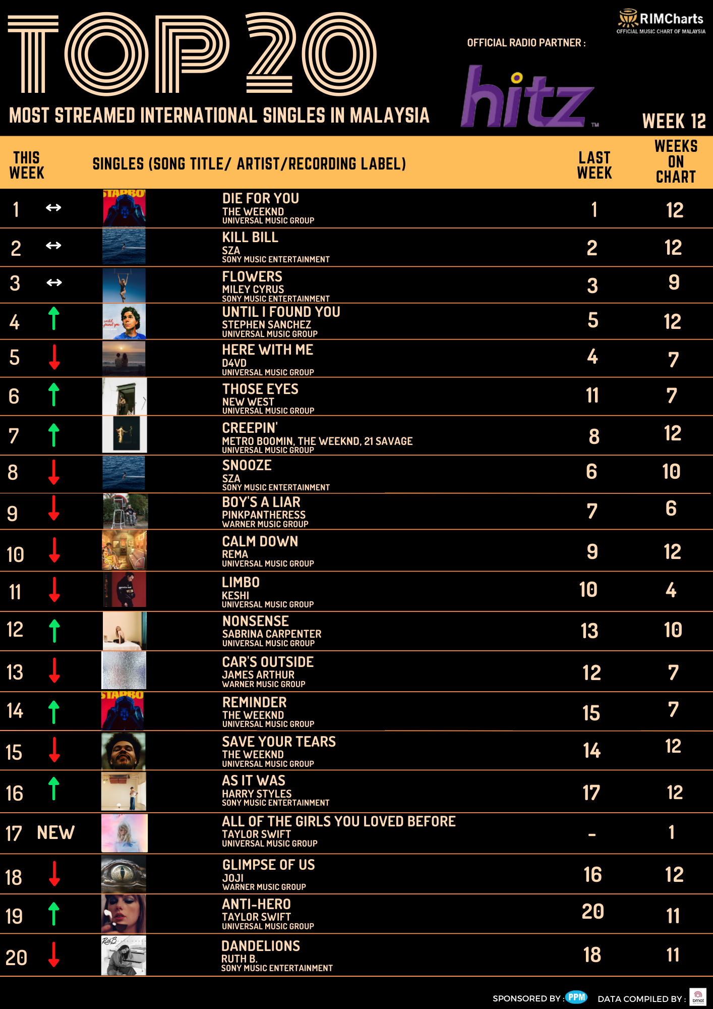 RIM Charts Top 20 Most Streamed International Singles in Malaysia – Week 12 (17/03/2023-23/03/2023)