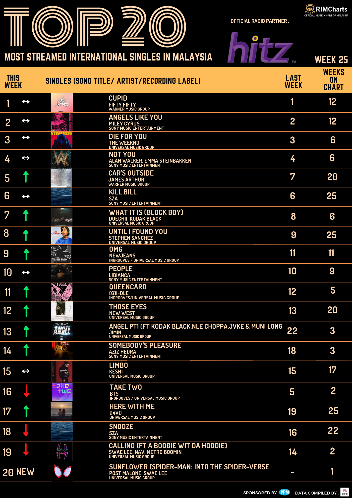 RIM Charts TOP 20 Most Streamed International Singles in Malaysia-Week 25 (16/06/2023/22/06/2023)