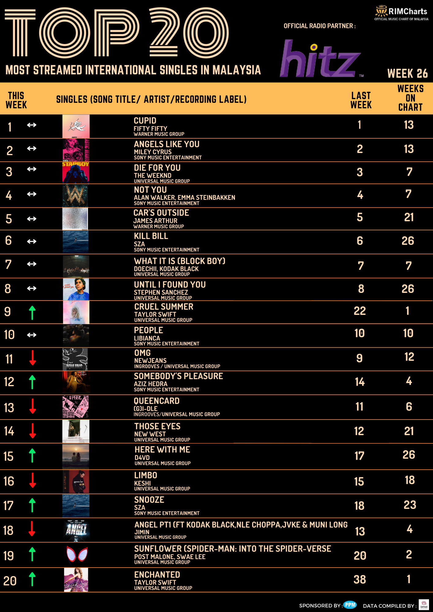 RIM Charts TOP 20 Most Streamed International Singles in Malaysia-Week 26 (23/06/2023/29/06/2023)