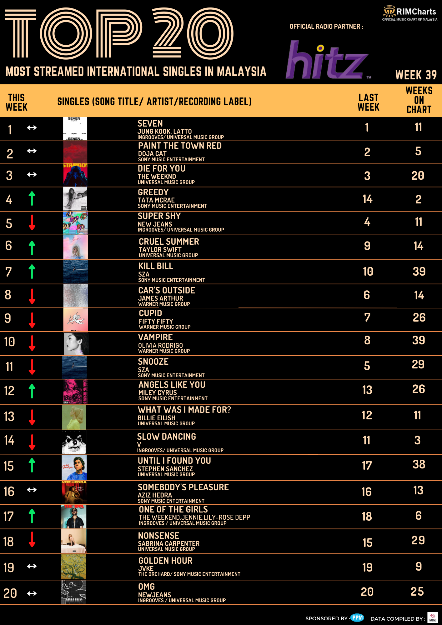 RIM Charts TOP 20 Most Streamed International Singles in Malaysia-Week 39 Week 39 (22/09/2023- 28/09/2023)