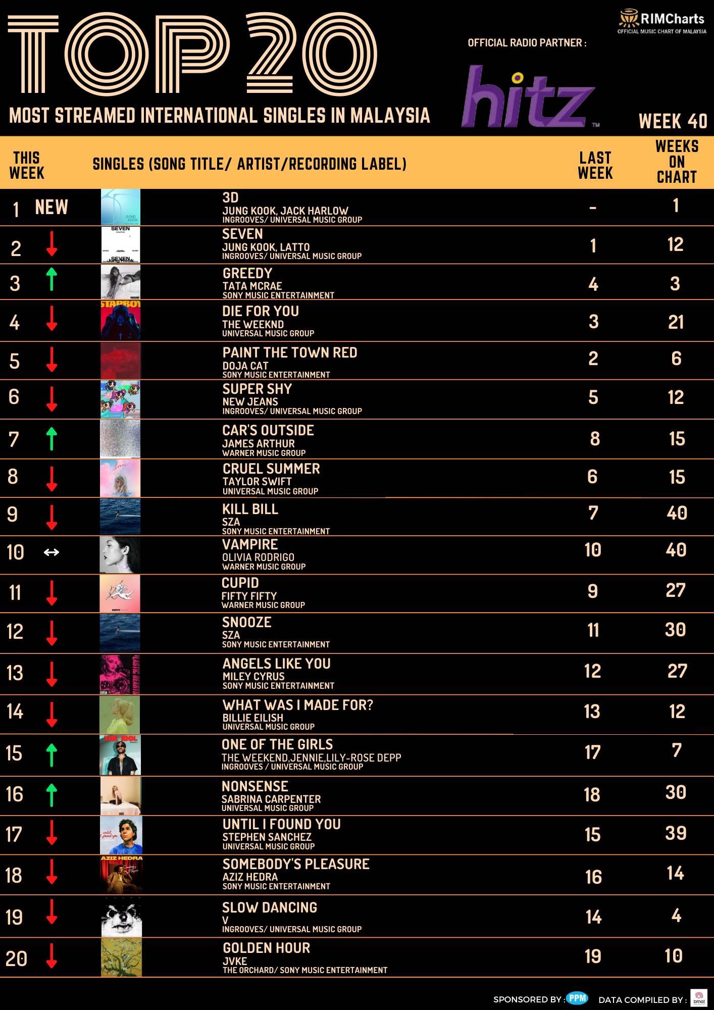 RIM Charts TOP 20 Most Streamed International Singles in Malaysia-Week 40 (29/09/2023- 05/10/2023)