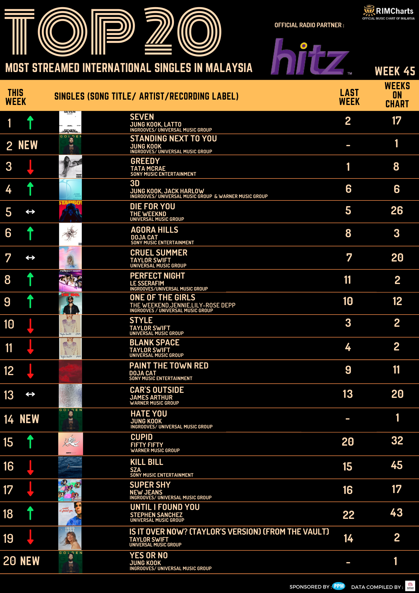 RIM Charts TOP 20 Most Streamed International Singles in Malaysia-Week 45 (03/11/2023-09/11/2023)