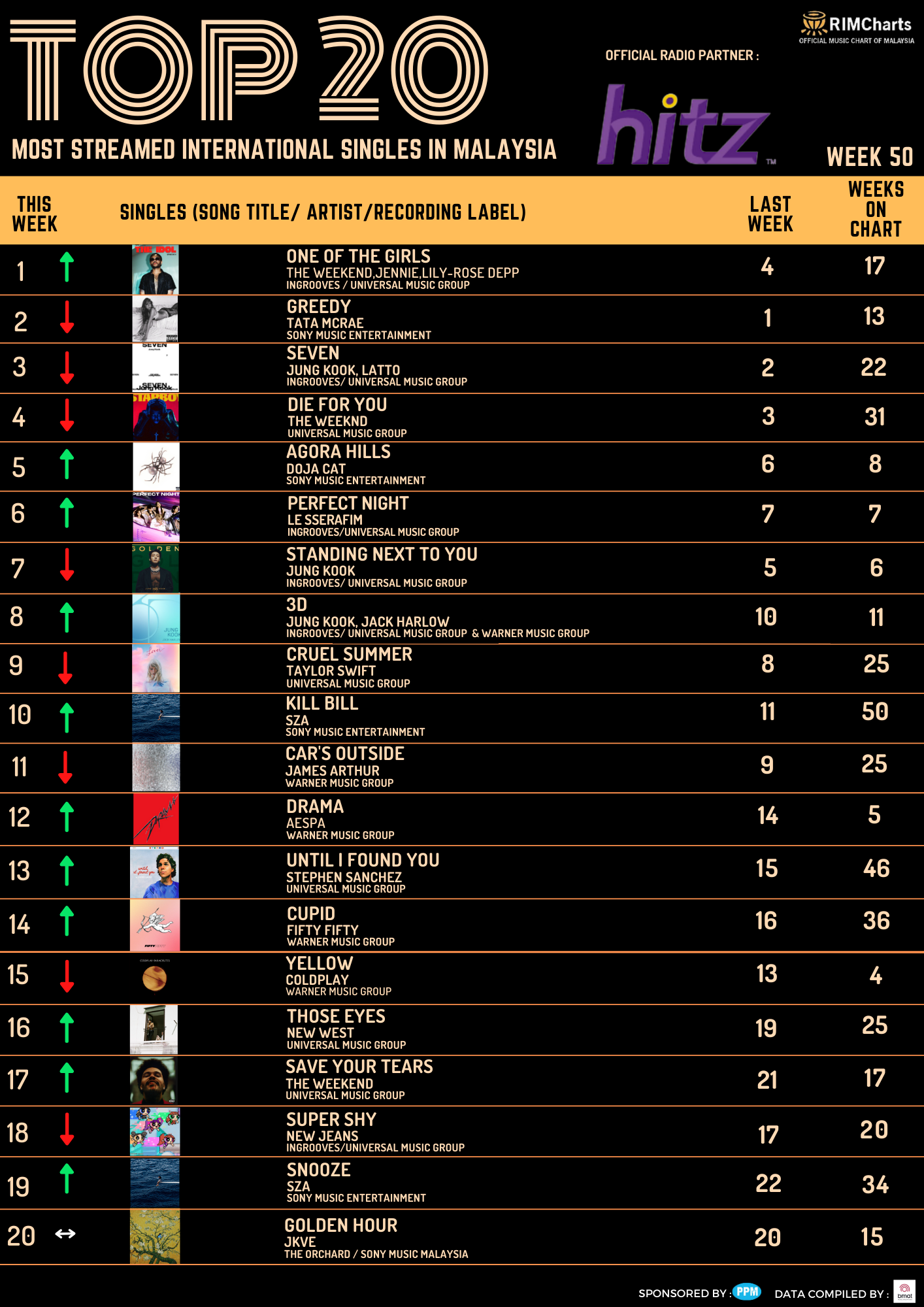 RIM Charts TOP 20 Most Streamed International Singles in Malaysia-Week 50 (08/12/2023-14/12/2023)