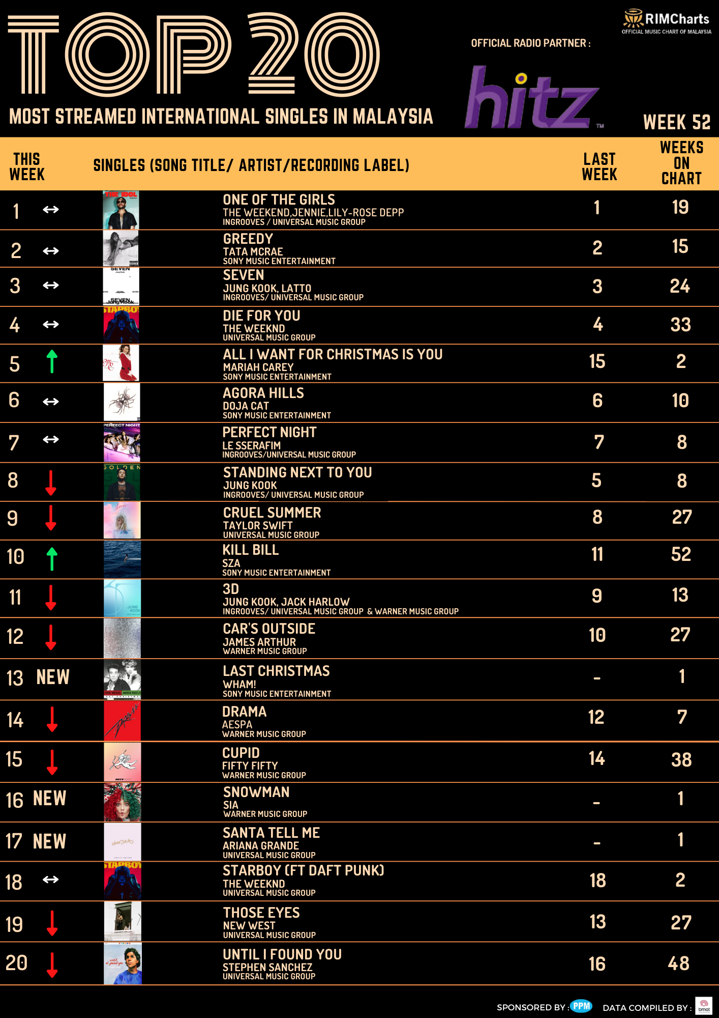 RIM Charts TOP 20 Most Streamed International Singles in Malaysia – Week 52 (22/12/2023-28/12/2023)