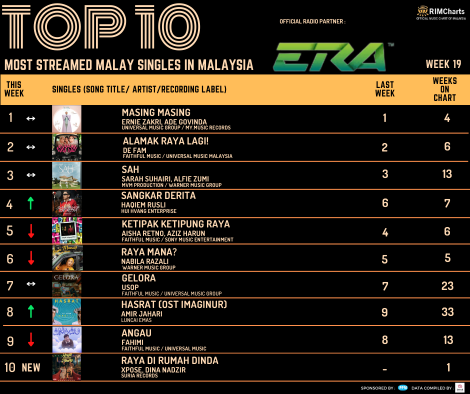 RIM Charts Top 10 Most Streamed Malay Singles in Malaysia – Week 20 (10/05/2024-16/05/2024)
