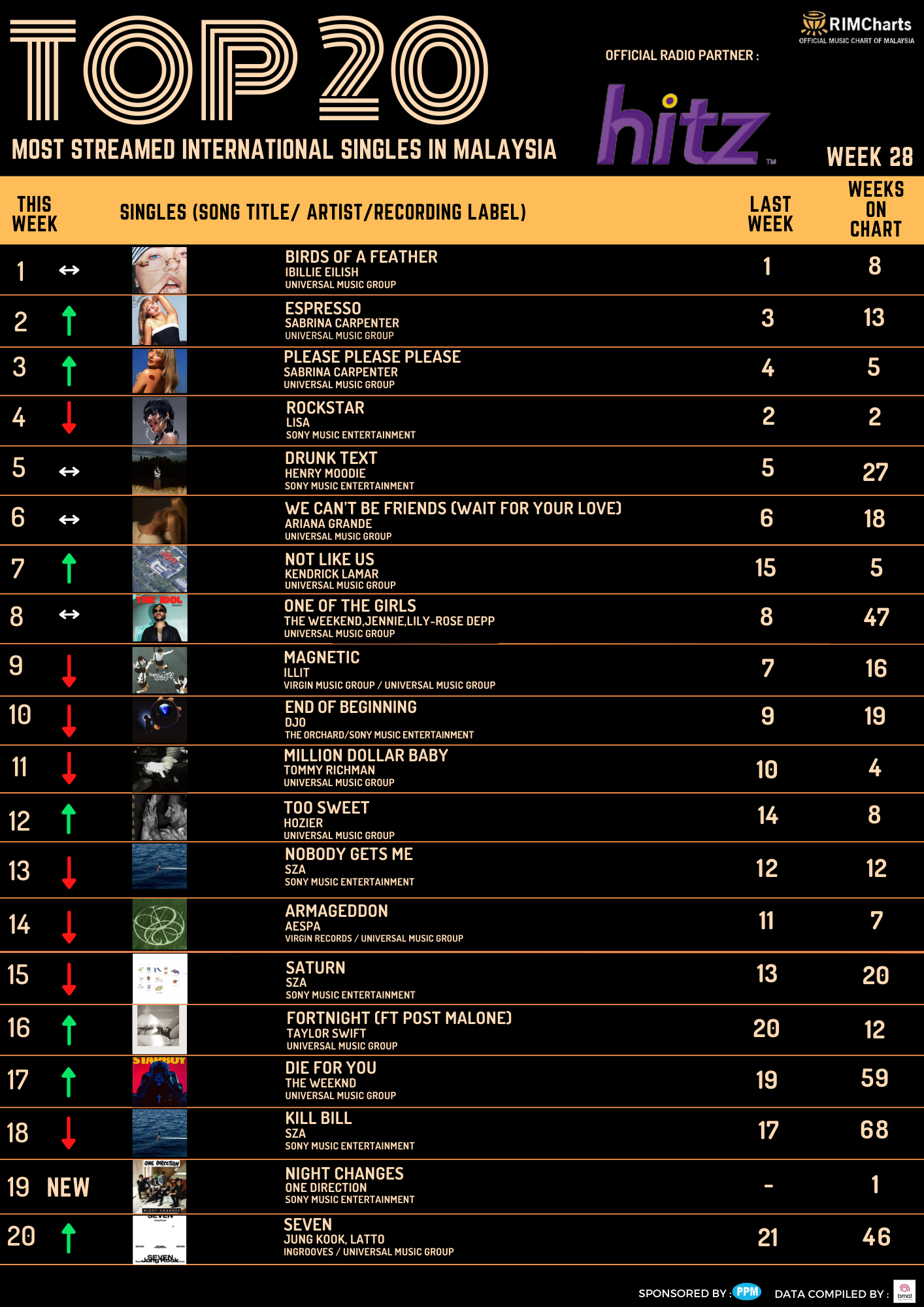 RIM Charts Top 20 Most Streamed International Singles in Malaysia – Week 28 (05/07/2024-11/07/2024)