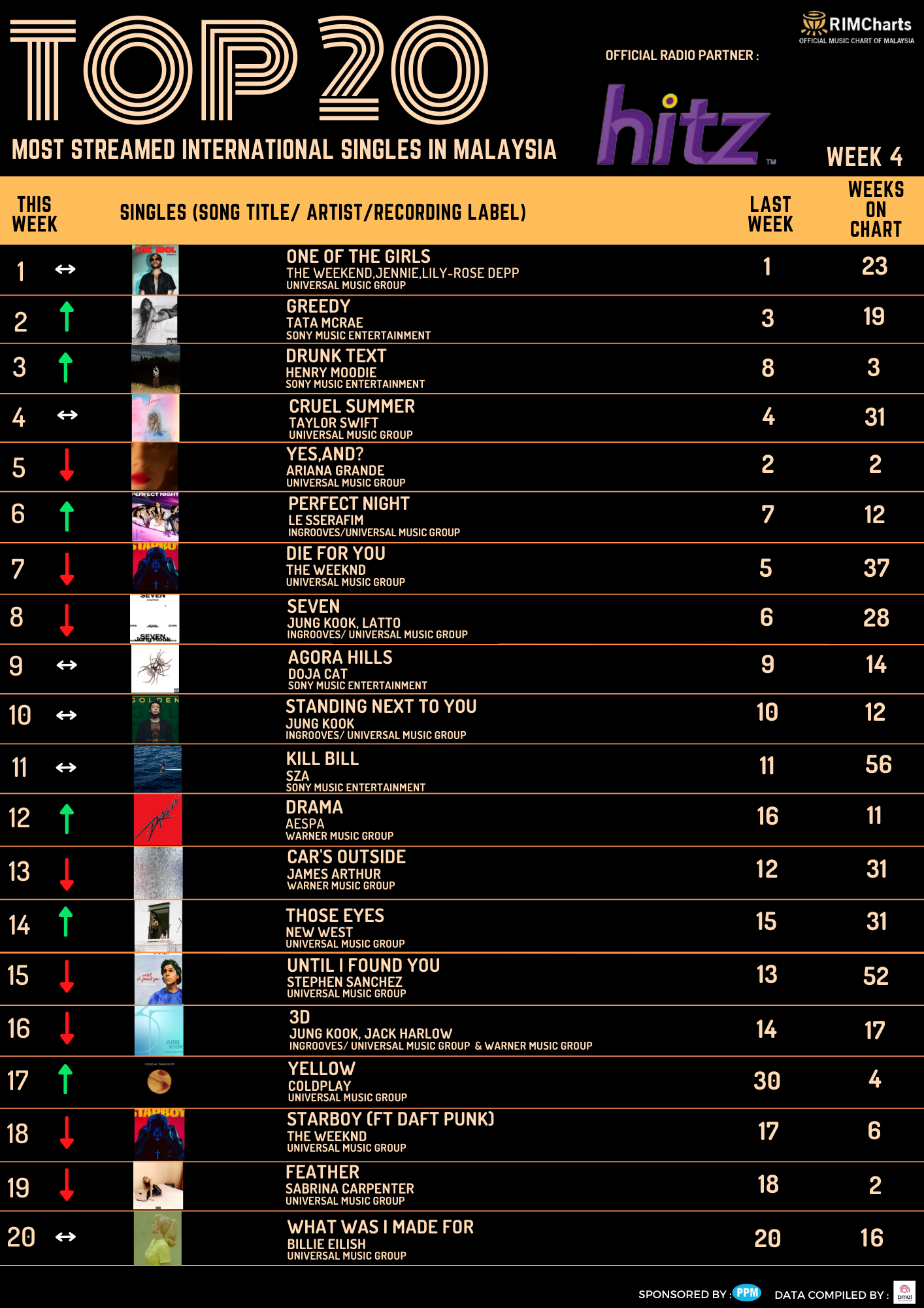 RIM Charts Top 20 Most Streamed International Singles in Malaysia – Week 3 (12/01/2024-18/01/2024)