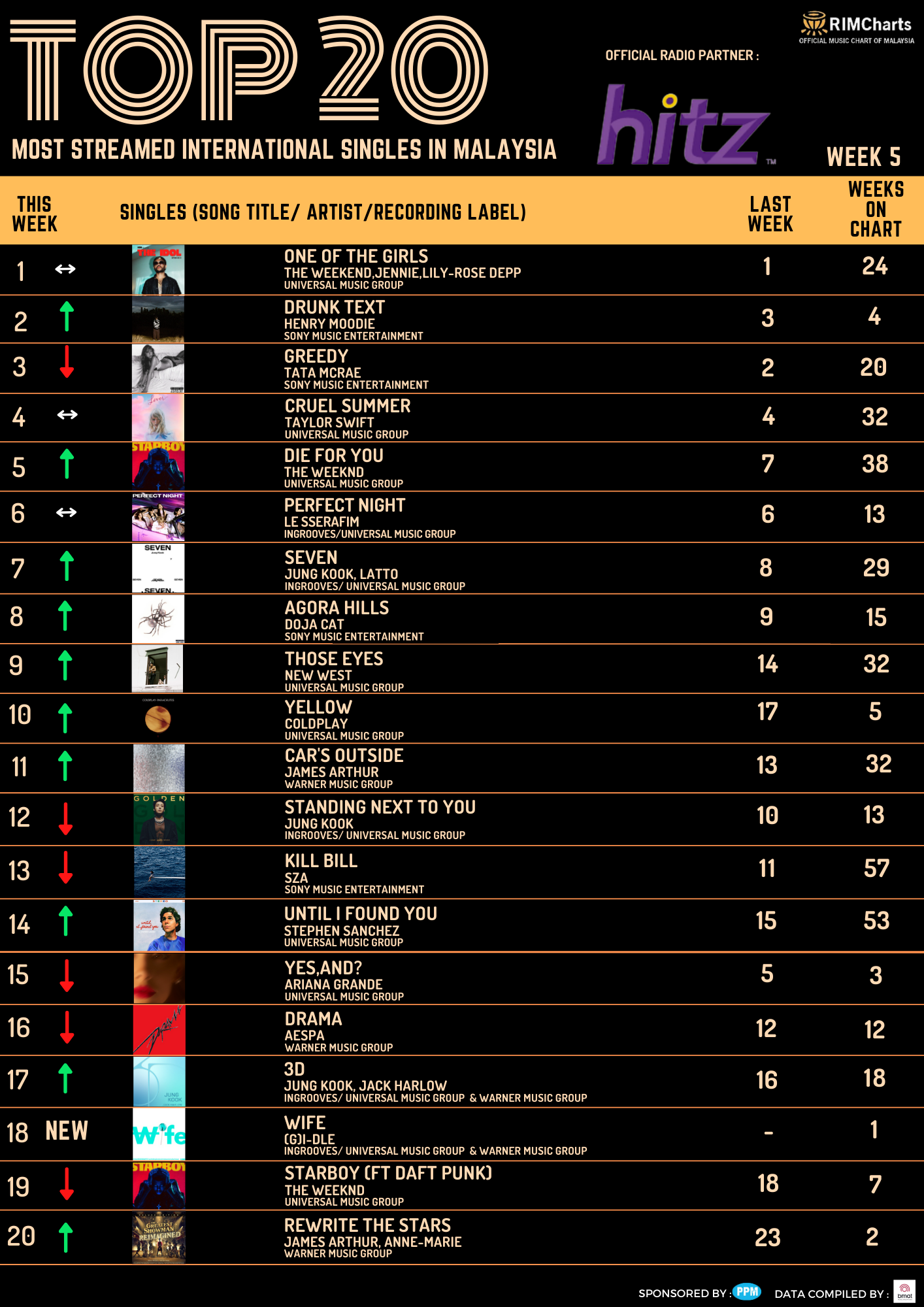 RIM Charts Top 20 Most Streamed International Singles in Malaysia – Week 6 (02/02/2024-08/02/2024)