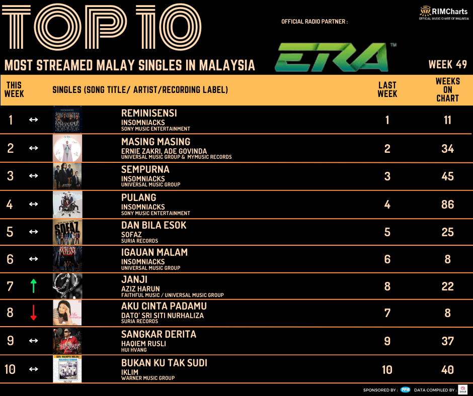 RIM Charts Top 10 Most Streamed Malay Singles in Malaysia – Week 49 (29/11/2024-05/12/2024)