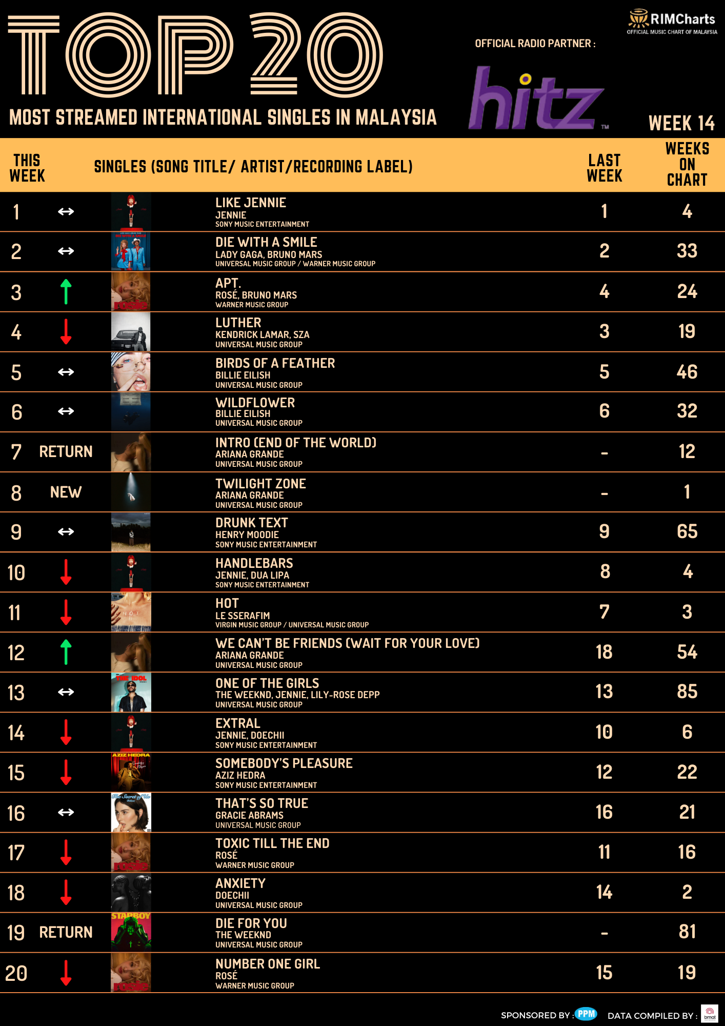 RIM Charts Top 20 Most Streamed International Singles in Malaysia – Week 14 (28/03/2025-03/04/2025)
